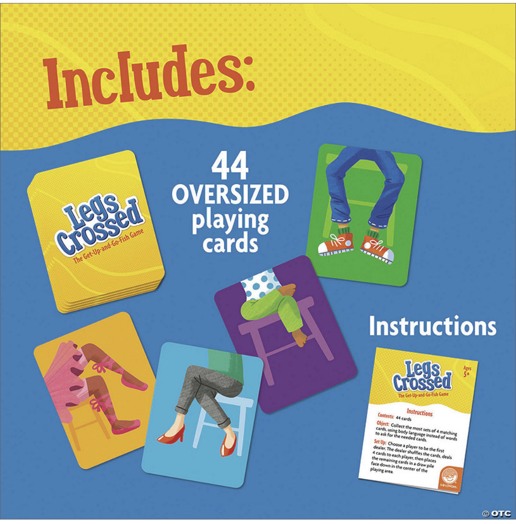 Get ready to bend, stretch and shift while you sit in this silly action game that will have the whole family laughing in their seats! Your objective: collect matching sets of 4 cards. When it's your turn, zip your lips and let your legs do the talking! "Ask" your opponents if they can match your card by twisting your legs to recreate the position shown. The person with the most sets at the end of the game is the winner!