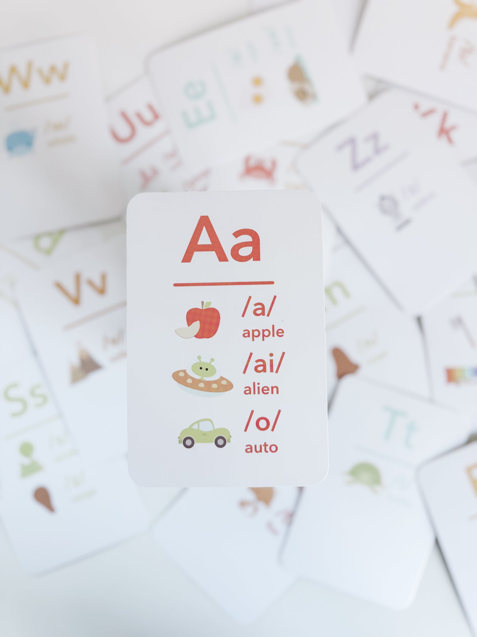 - Letter & Sound Pairing: Each card features a letter alongside a corresponding phonetic sound for clear recognition.
